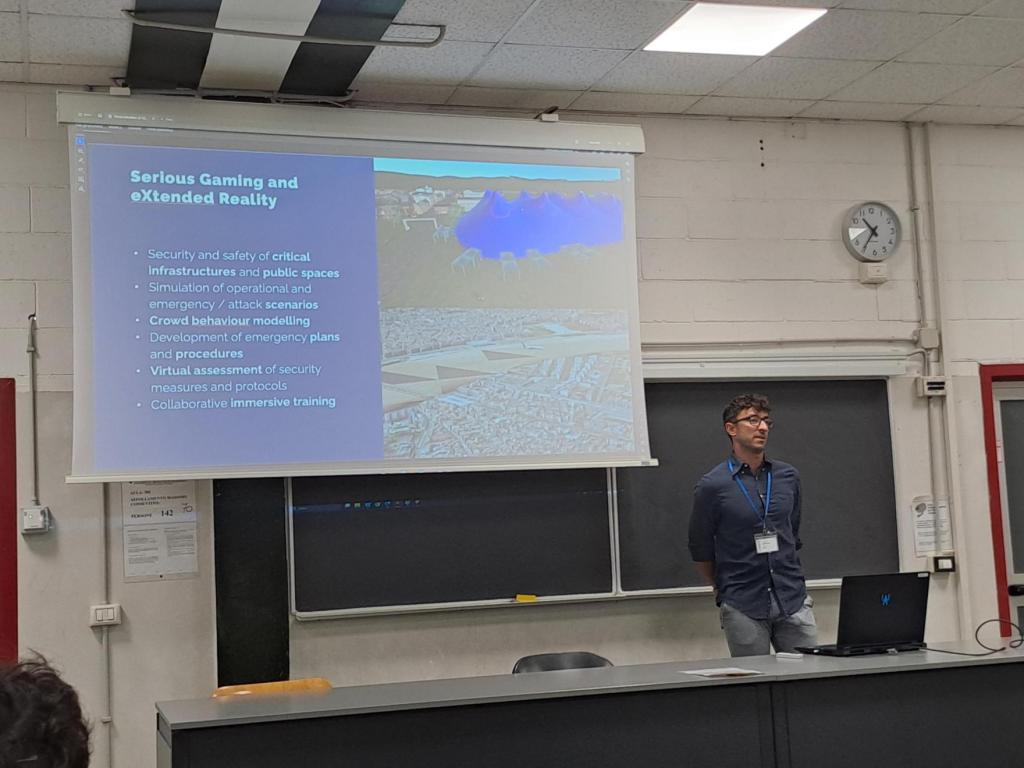 Stefano Fabbri delivered a presentation within the SPIRIT project, focusing on enhancing the security of religious sites through advanced VR simulators and the implementation of interoperability between simulators using HLA (High-Level Architecture) and DIS (Distributed Interactive Simulation) protocols. STAM’s contributions in developing a VR scenario builder, crowd simulation engine, and simulators federation were described and promoted as part of the company’s activities in SPIRIT. Together with STAM, other important industrial partners participated to the event.